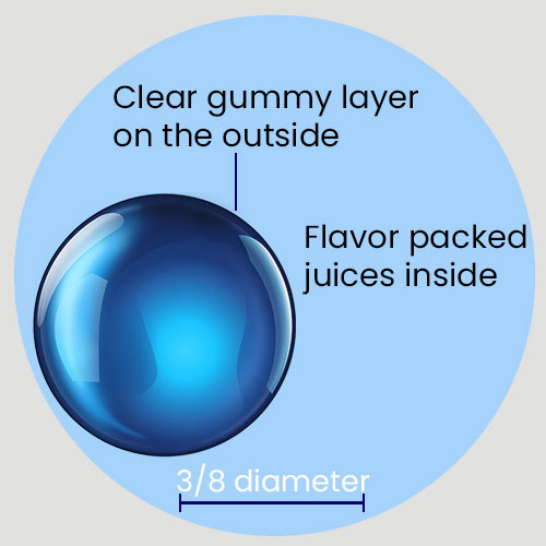 Popping boba are round juice-filled balls with a sweet and gummy texture. When bitten into they explode with a flavorful fruit juice. Each popping boba ball is about 3/8 in diameter and will add a great look to any of your desserts or drinks.