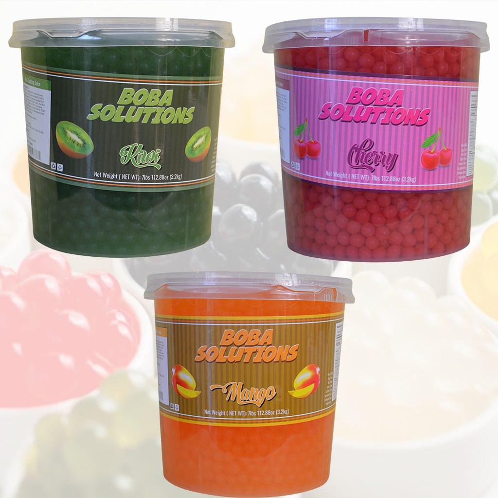 Popping boba from Boba Solutions is here! These delicious bursting boba are packed with flavor and perfect for any drinks such as boba, bubble tea, frozen desserts, and more.